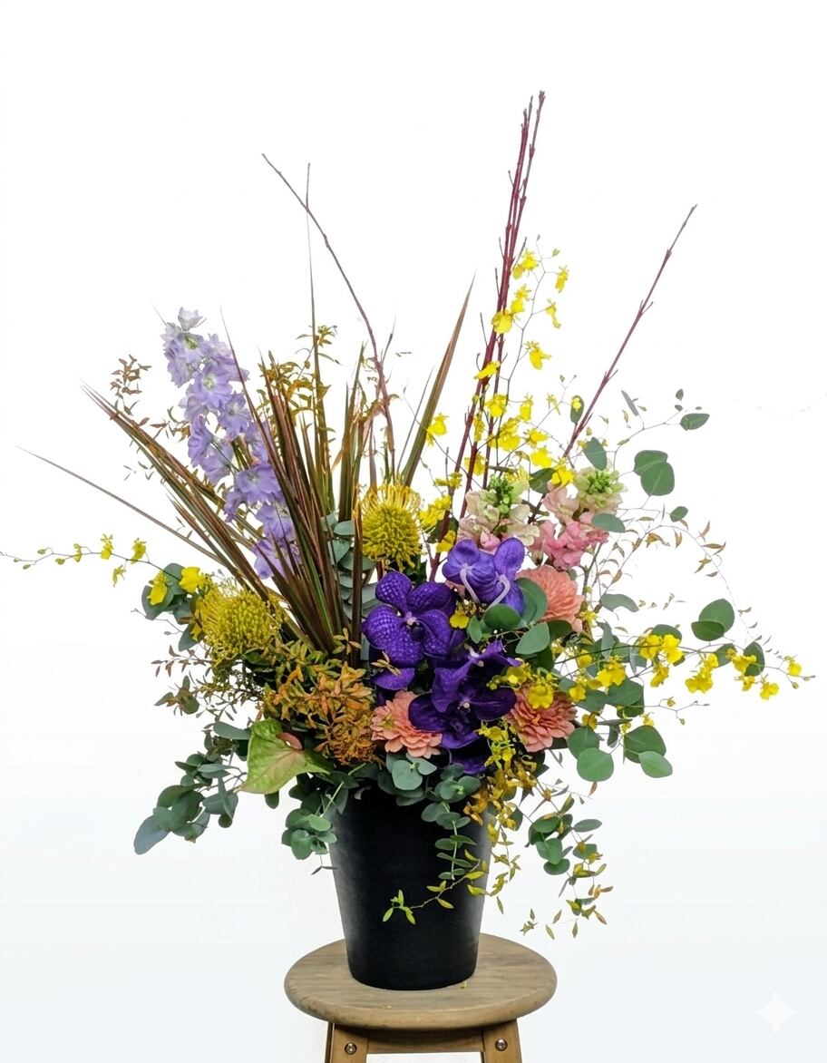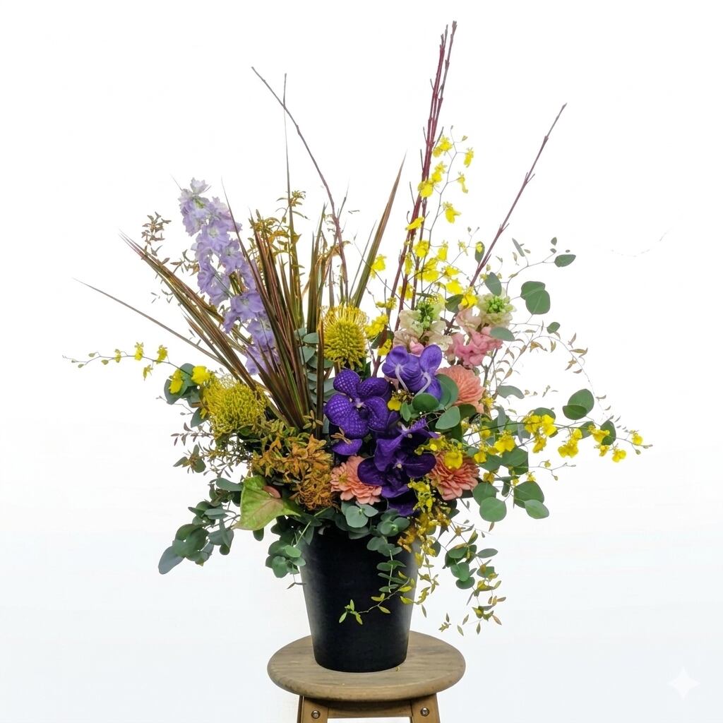 季節の花などを取り入れ、華やかにお任せ制作です。